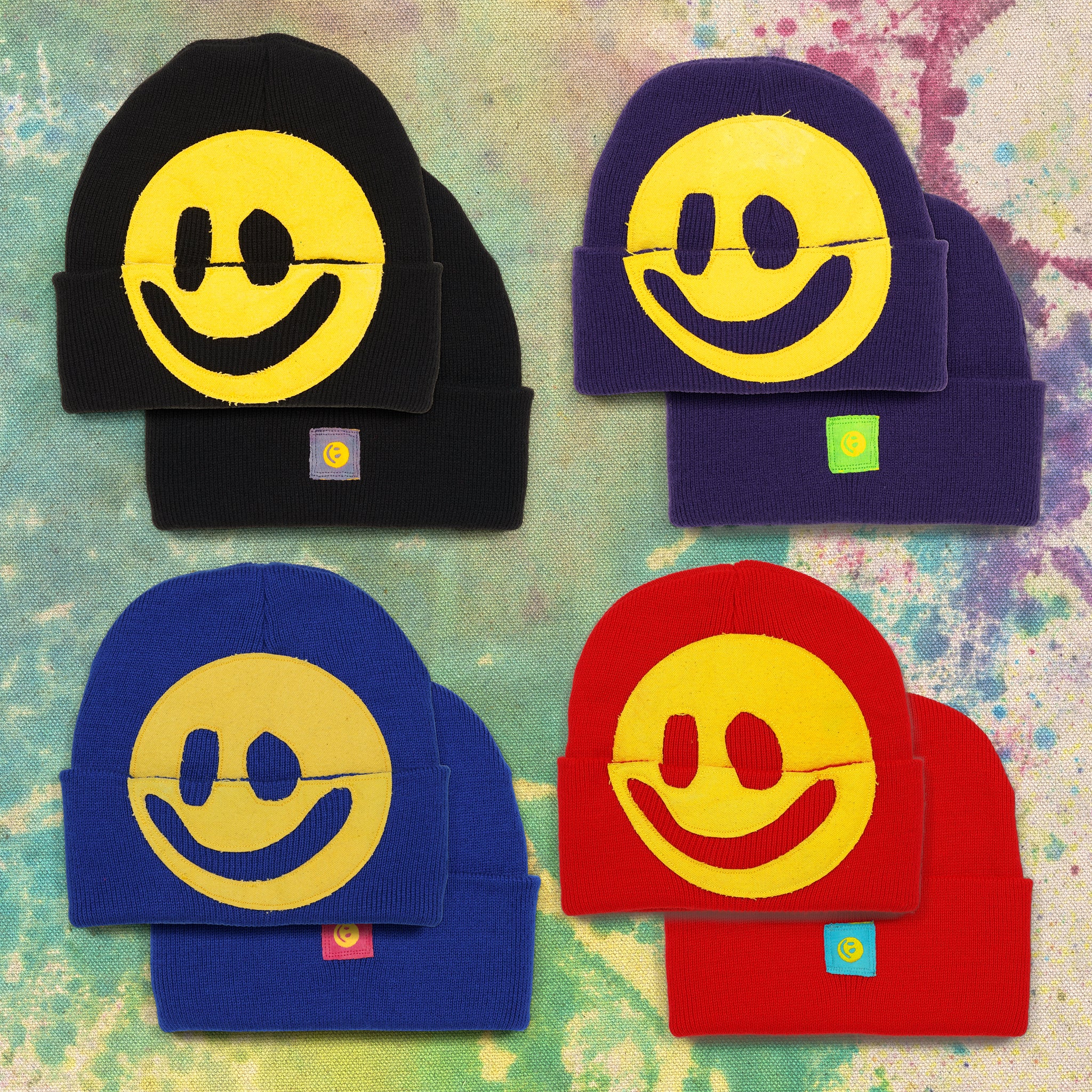 - Screen printed 1" square recycled cotton Smiley swatch